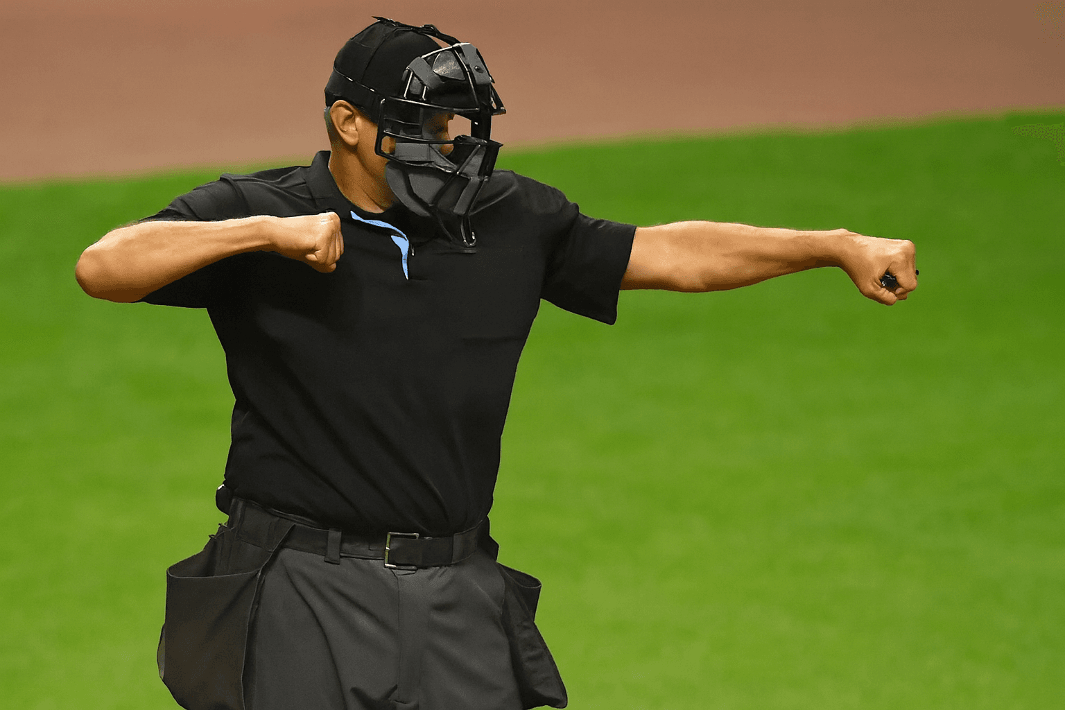 De scheidsrechter steekt zijn rechterarm omhoog
